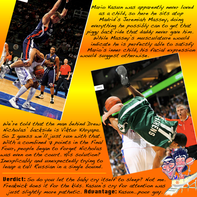 Next up in the Face-Off: Oguz Savas tries to eat a basketball.