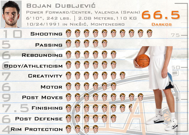Post Moves: Dubljevic does not move quickly and isn’t that agile in side-to-side movements, but has really nice footwork. His sturdy frame gets him good positioning and his footwork allows him the necessary movement to get off his shot. Not a dynamic finisher deeper in the paint where tall, athletic, shot blockers roam; but instead makes more of living between the block and the mid-range where his soft touch makes a short jumper almost as effective as a lay-up.